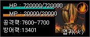 | 공격력 1700 체력 400만, 마력 8만 타저 405%, 마저 395% | |||