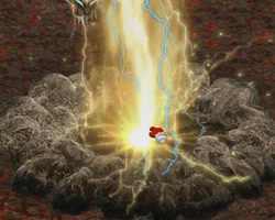 기능 : 굵은 섬광이 공중에서 추락하며 범위형 공격을 가한다. 일정확율로 9등급이하 몹을 감전 시키고, 범위내 공중몹의 마저 10% 감소 시킨다.